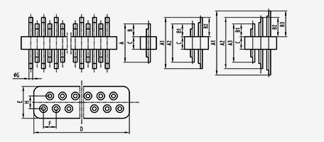 | 3-JD155545-0,5(9,5-4)-12 | MỘTl=9.5 MỘT2=7.5 MỘT3=5.5 | B1=4 B2=3 B3=2 | 1.5 | 5.5 | 4.5 | 1.27 | 0.5 | 1.5 | 12 | 3 | hàn |