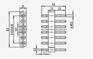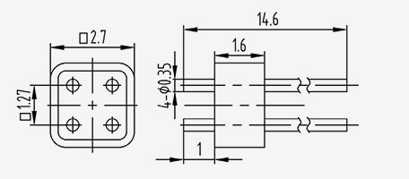 | JD155515-0,5(5,7-1,7}-4 | 5.7 | 1.7 | 1.5 | 5.5 | 1.5 | 1.27 | 0.5 | 0 | 4 | 1 | Dây dẫn bên trong phía trên liên kết dẹt |