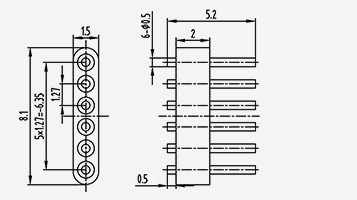 | JD1512015-0,5(5,8-2,5)-9 | 5.8 | 2.5 | 1.5 | 12 | 1.5 | 1.27 | 0.5 | 0 | 9 | 1 | Dây dẫn bên trong bên dưới liên kết phẳng |
