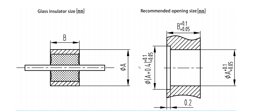 Kích thước mở lắp đặt được khuyến nghị cho chất cách điện thủy tinh lõi đơn được hiển thị bên dưới: