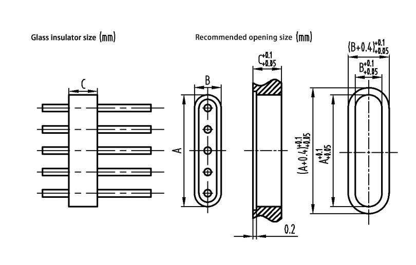 Kích thước lỗ lắp khuyến nghị cho chất cách điện bằng thủy tinh nhiều lõi được hiển thị bên dưới: